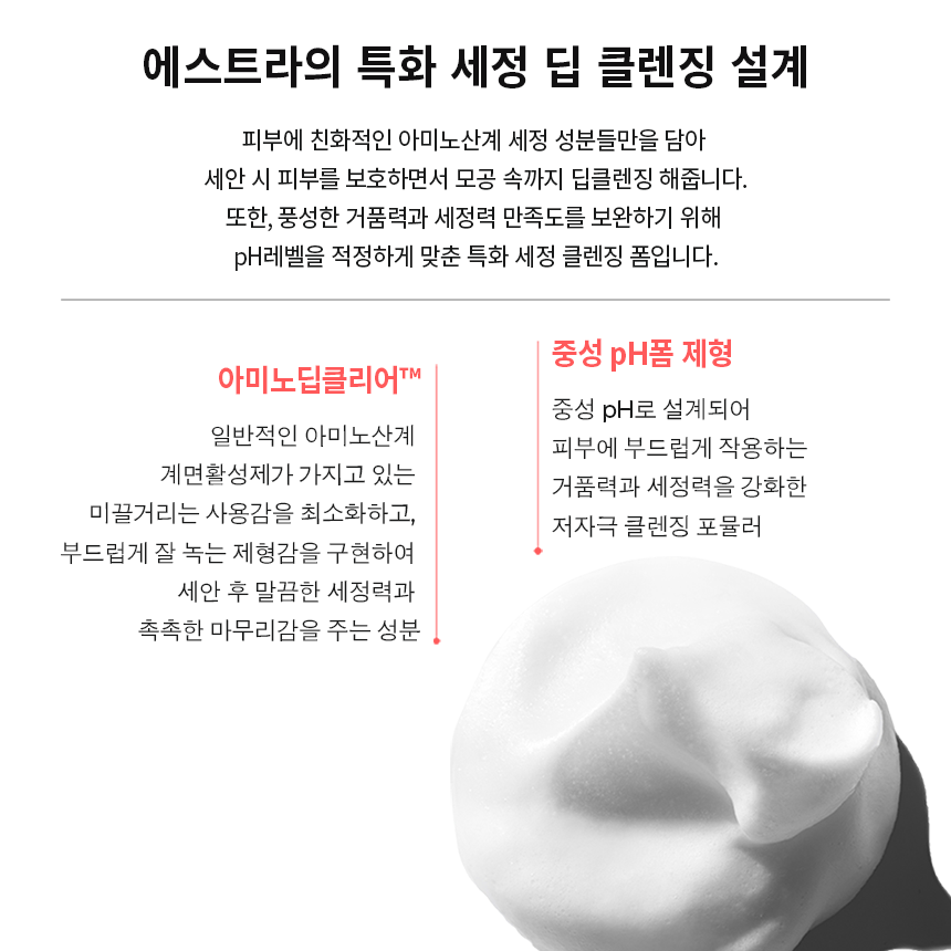 향이 좋아요. 트러블 전용이라 자극적일까 걱정했는데 전혀 자극적이지 않아요. 조금만 써도 세정력이 좋고 무엇보다 세안후 당기지가 않아요. 약산성 아닌 제품 찾고 있었는데 에스트라 테라크네가 중성에 잘 닦여서 너무 만족스럽네요. 폼클렌징 드디어 정착템입니다.