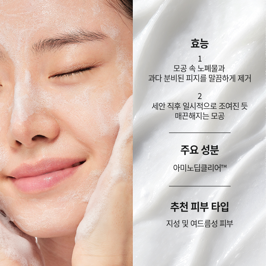 테라크네만의 특화 세정 성분으로 한번의 세정으로도 모공 속까지 잔여감없이 말끔하게 세안해주고 피부 컨디션을 케어하는 딥 클렌징 폼