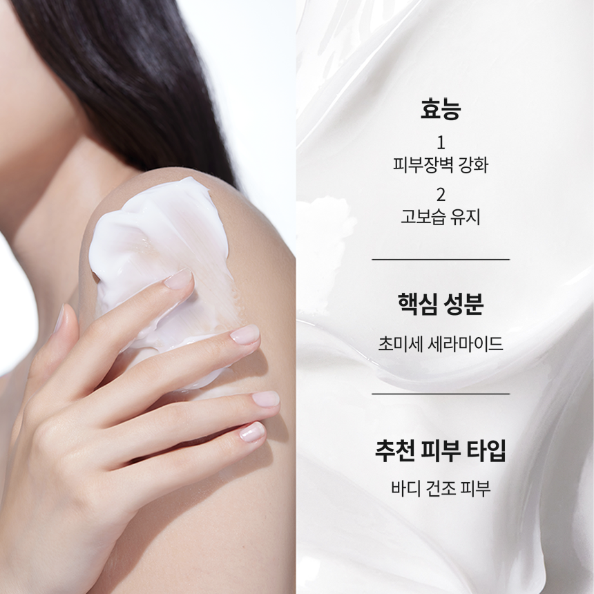 건조로 민감해진 피부장벽을 강화하여 하루종일 촉촉함을 유지시켜주는 고보습 바디크림