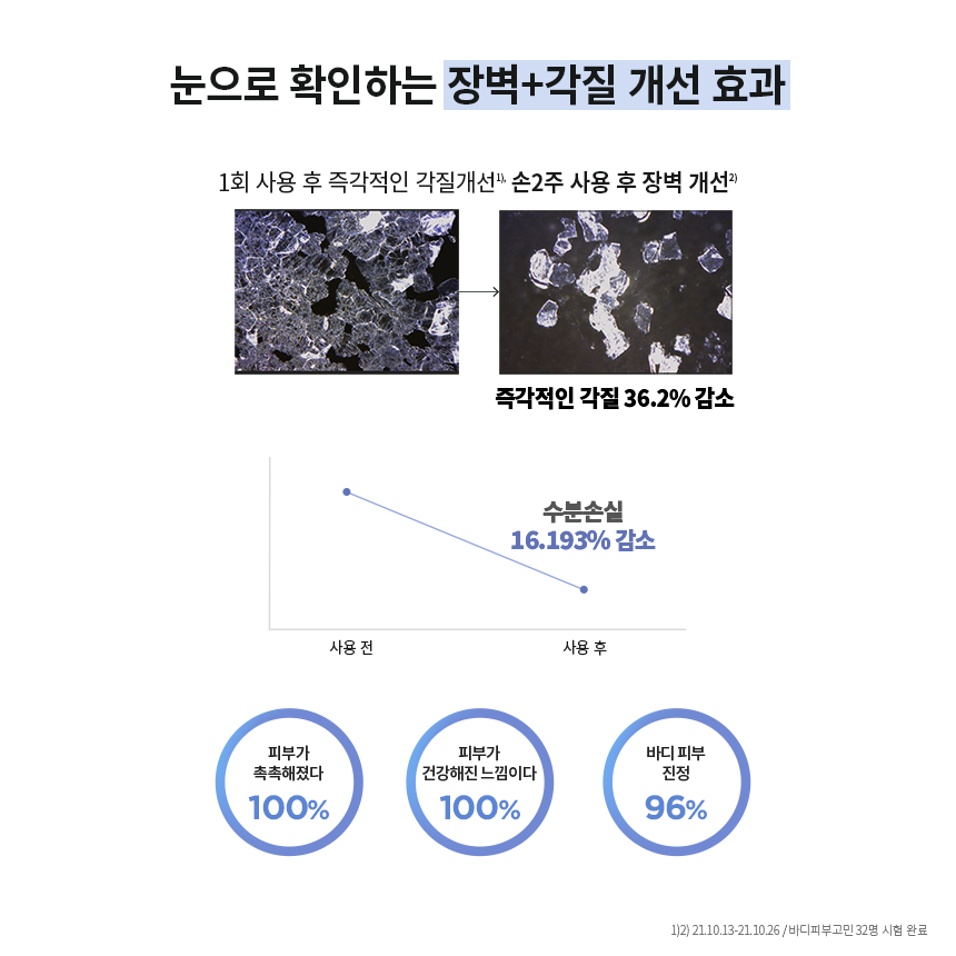 샘플 받아서 사용해봤는데 좋아서 구입합니다 겨울이 오니 바디 로션을 발라도 건조하고 스크럽을 해도 각질이 조금씩 보였는데 이 제품 사용하니 바로 하루종일 촉촉해지네요 겨울에 딱입니다!! 다 쓰고 재구입 생각 있습니다!!